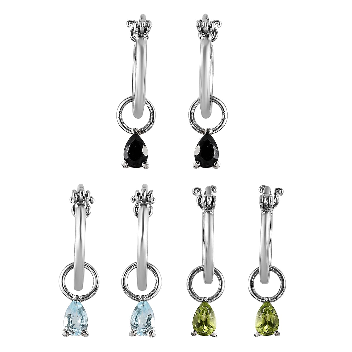 Set of 3 Peridot, Thai Black Spinel, Sky Blue Topaz Earrings in Stainless Steel 1.75 ctw , Tarnish-Free, Waterproof, Sweat Proof Jewelry