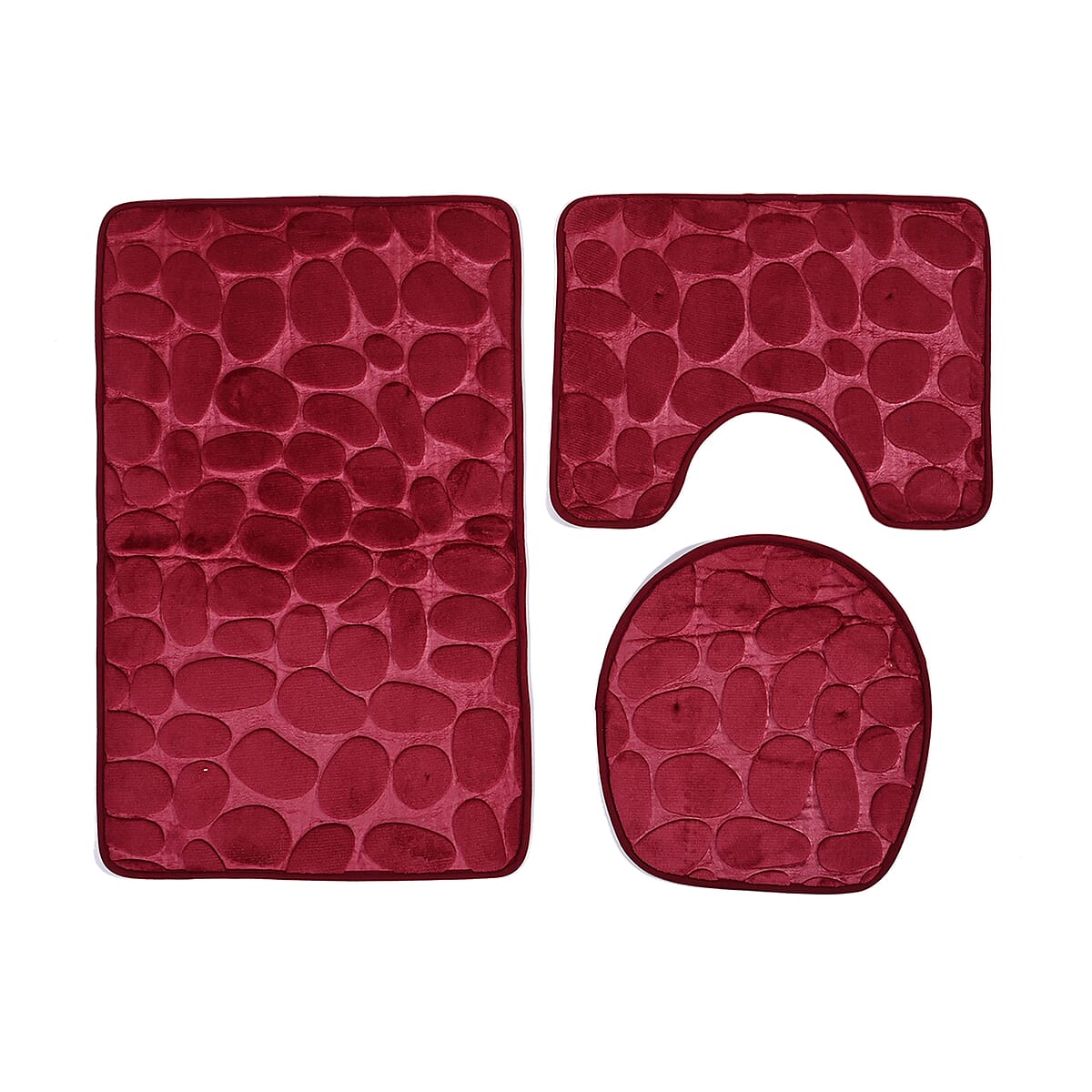 Set of 3 Piece - Burgundy Polyester Bath Mat, Toilet Mat and Toilet Cover