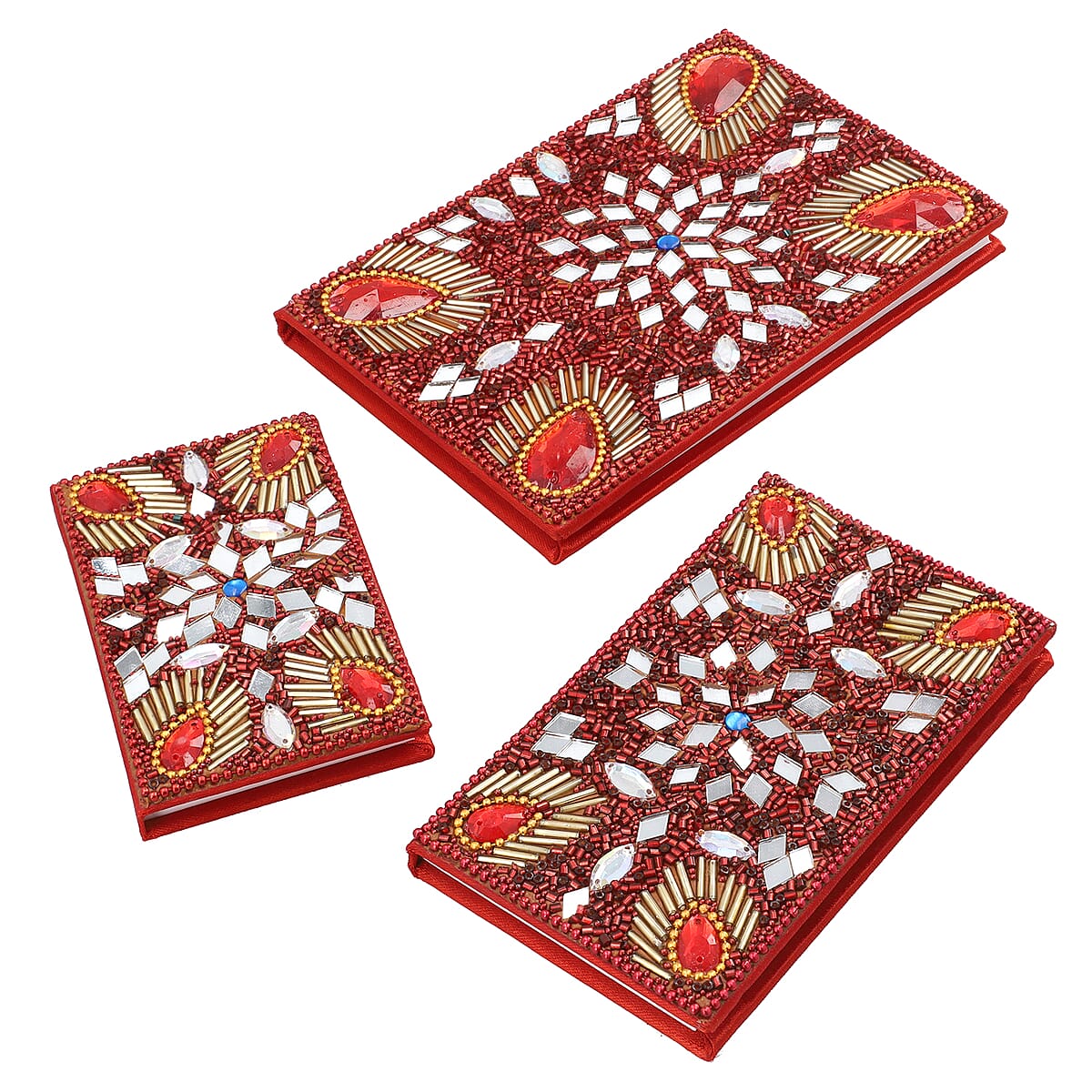 Keep your memories close to you with this set of three bedazzled diaries. Beautifully designed, the matching set of items showcases amazing sequin work that adds charm and colors to the surrounding. A perfect set of items for personal use as well as to gift someone special.