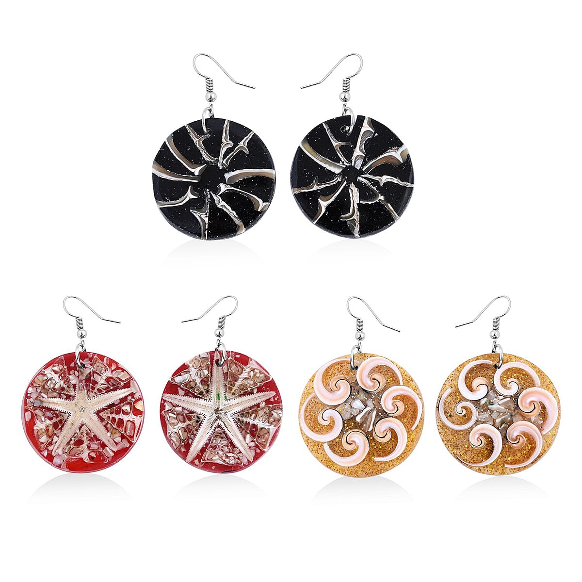 Set of 3 Resin Spider Net, Hurricane and Star Earrings in Sterling Silver