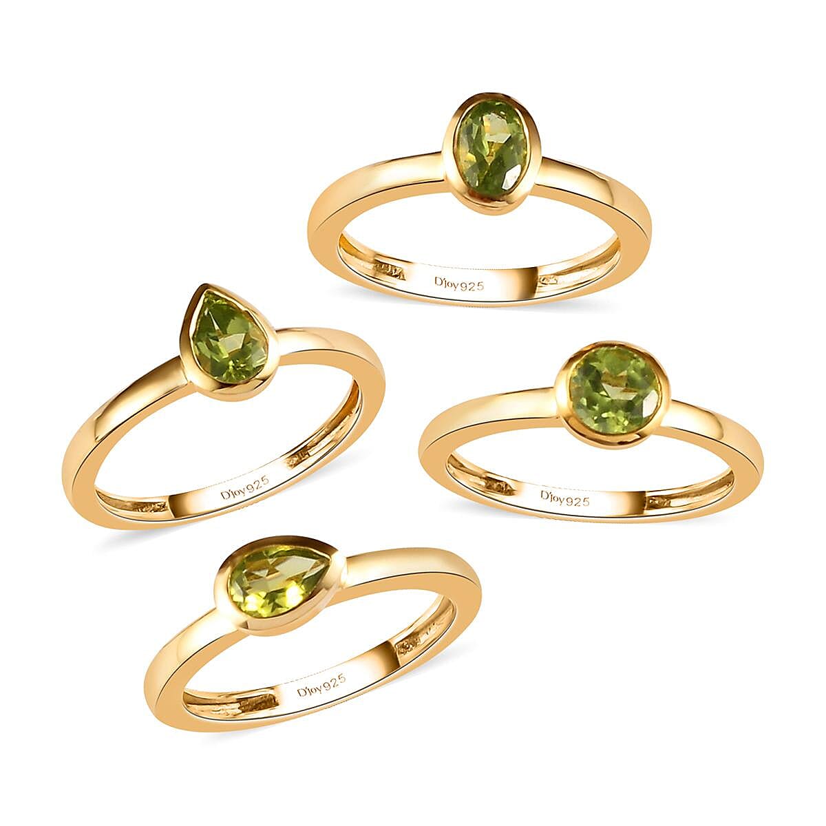 Set of 4 AMERICAN Natural Arizona Peridot Stackable Ring in Vermeil Yellow Gold Over Sterling Silver (Size 6.0) 7.35 Grams 1.90 ctw
