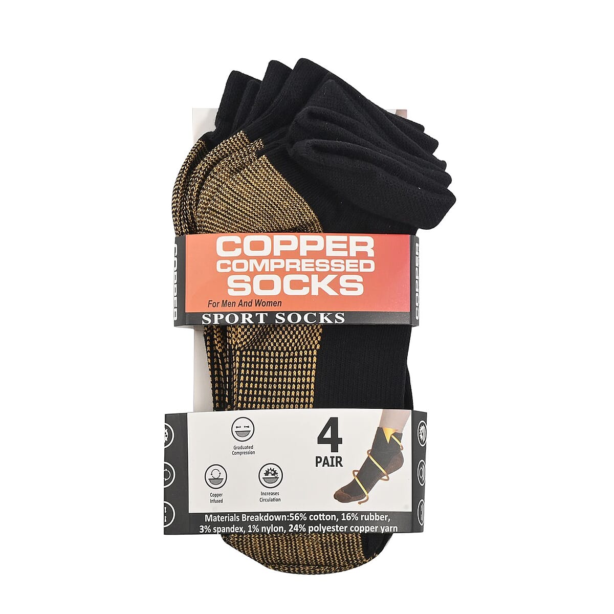 Set of 4 Pairs Copper Infused Compression No-Show Socks - Black (L/XL)