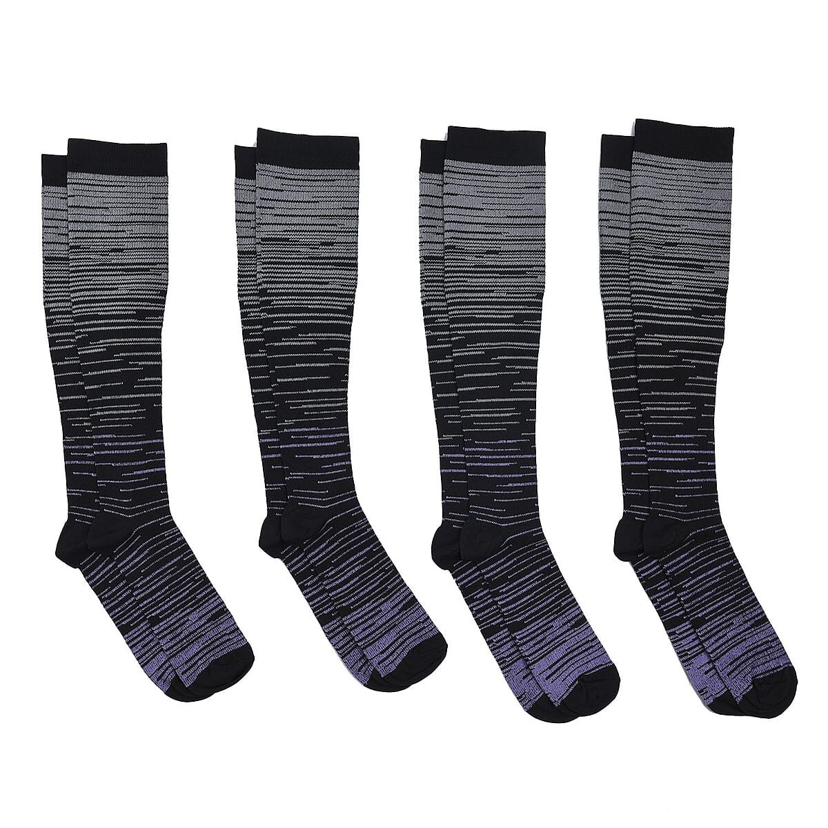 Set of 4 Pairs Knee Length Copper Infused Compression Socks - Gray, Black and purple (L/XL)