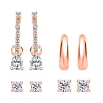 Set of 4 Simulated Diamond 2.85 ctw Earrings, Huggie Hoop Earrings with Tear Drop Interchangeable Charms, Plain Ear Cuffs, Stud Earrings For Women in 14K RG Over Sterling Silver
