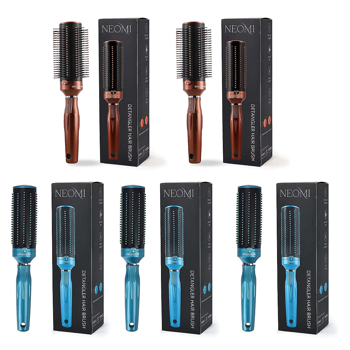 Set of 5 Brown and Blue Neomi Portable Easy Clean Rotating Comb