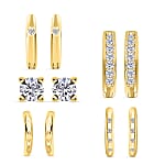 Set of 5 Simulated Diamond 1.40 ctw Earrings in 14K YG Over Sterling Silver, Simulated Diamond Solitaire Studs, Tribal Pattern Earrings, Plain Ear Cuffs, Simulated Diamond Studs