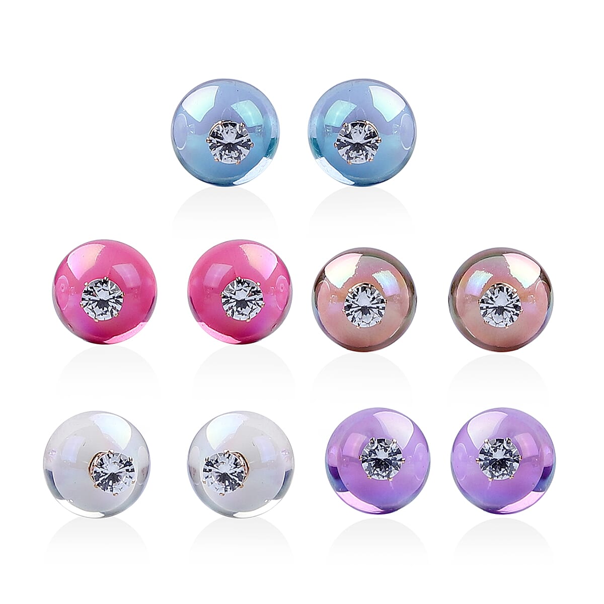 Set of 5 Simulated Multi Color Pearl Double Sided Stud Earrings in Goldtone