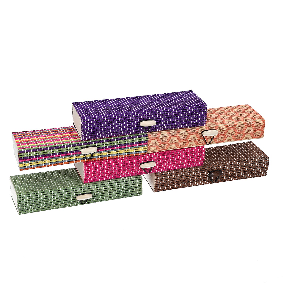 Set of 6 Multi Color Long Rectangle Shape Bamboo Jewelry Box