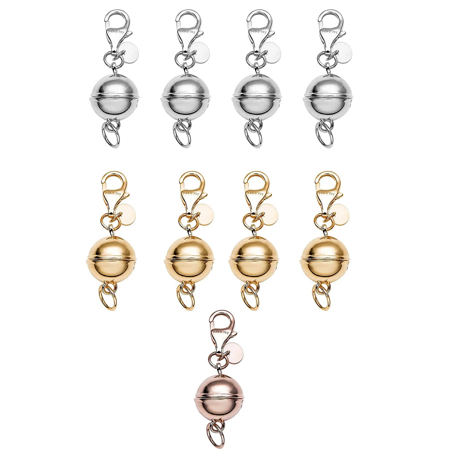 Set of 6 Rhodium, 14K YG and RG Over Sterling Silver 9mm Round Magnetic Lock with Lobster Clasp (14.82 g)