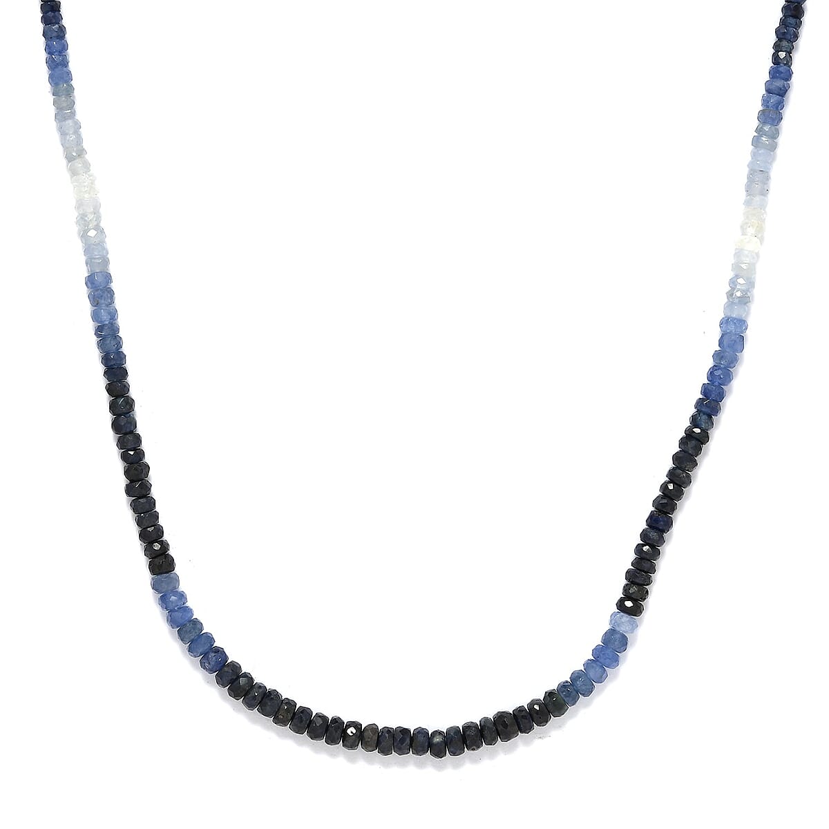 Shades of Blue Sapphire Beaded Necklace 20 Inches in Platinum Over Sterling Silver 55.00 ctw