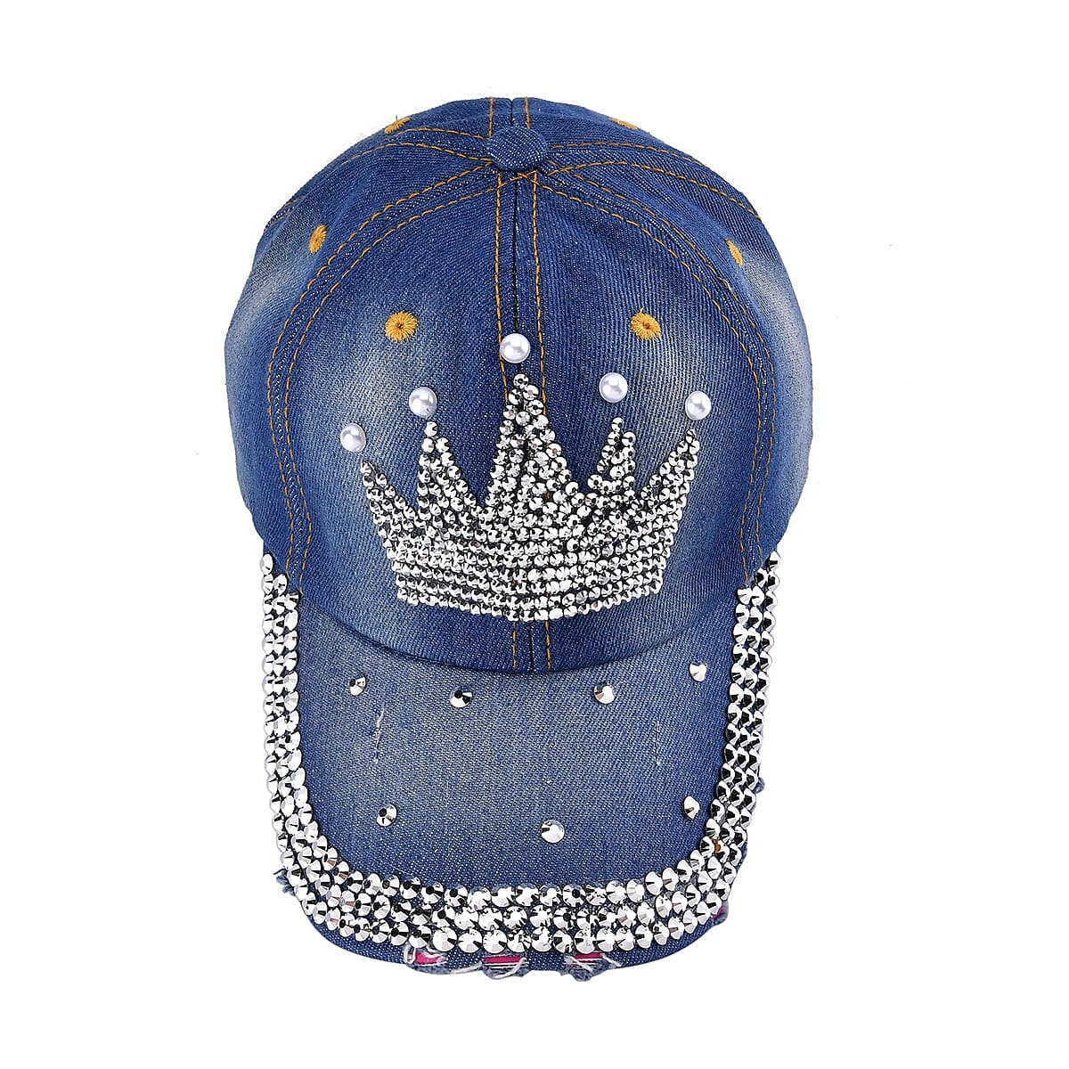 Shining Crystal and Crown Design Cap with Velcro Fasteners (Adjustable Strap) - Blue