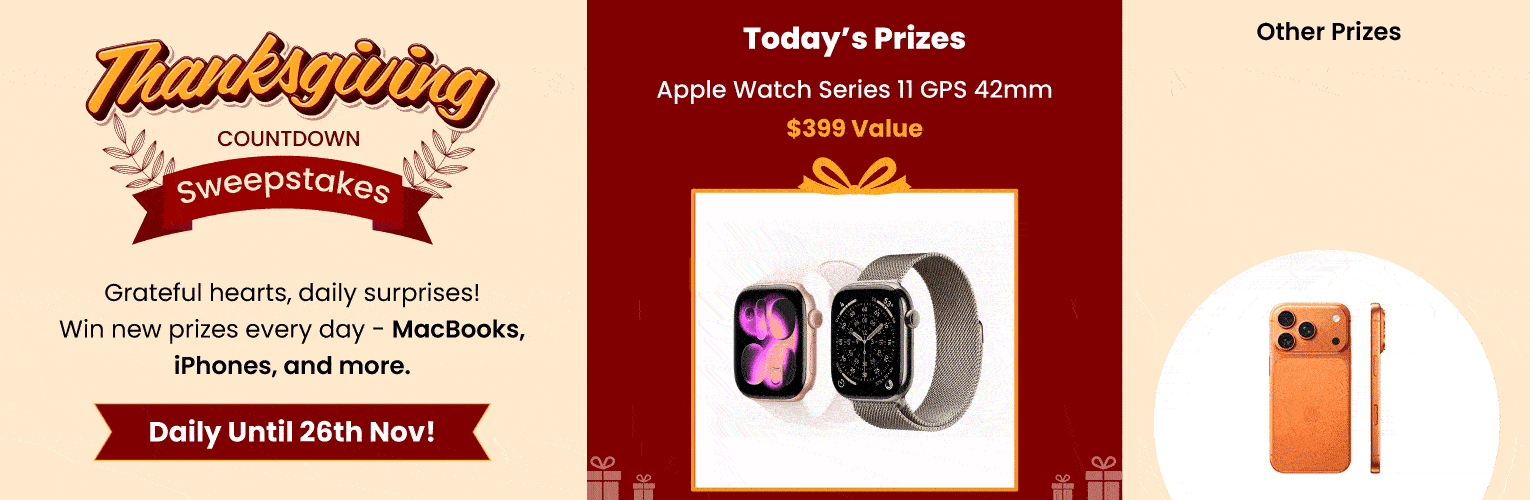 From the newest iPhones to sleek MacBooks, iPads, and Apple Watches, these prizes are designed to make your Thanksgiving extra special. Whether you gift them to loved ones or keep them for yourself, each prize adds a touch of modern magic to your holiday season.