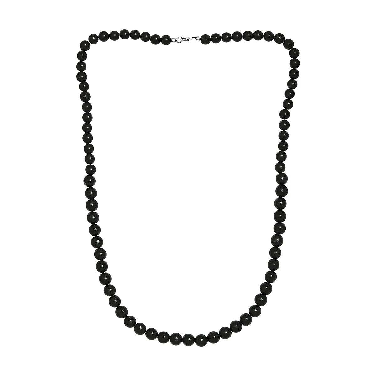 Shungite Beaded Necklace 30 Inches in Rhodium Over Sterling Silver 400.00 ctw