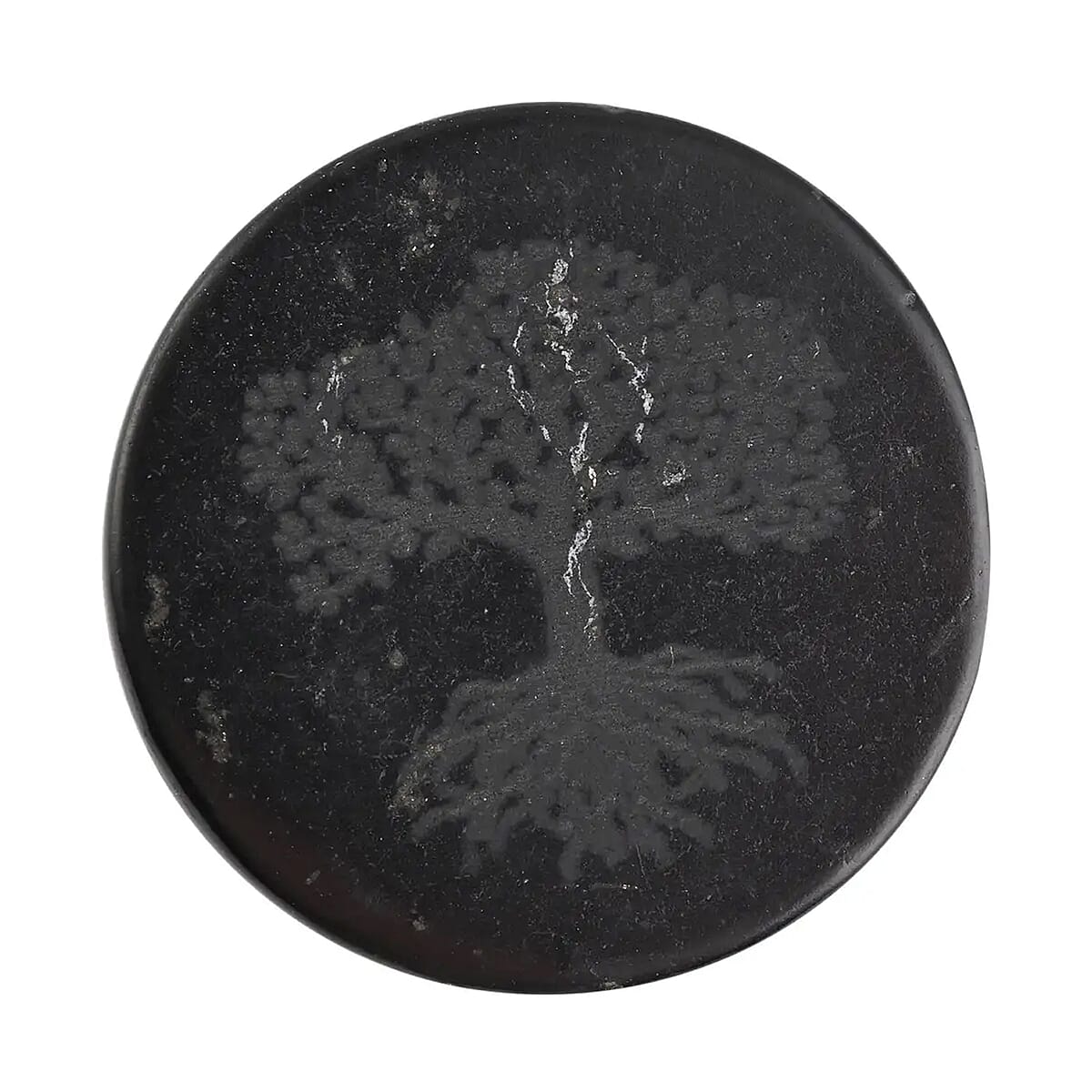 Shungite Tree of Life Engraved Round Cellphone Tile, Decorative Black Mineral Tile for Mobile Phones 1.25 Approx. 35ctw