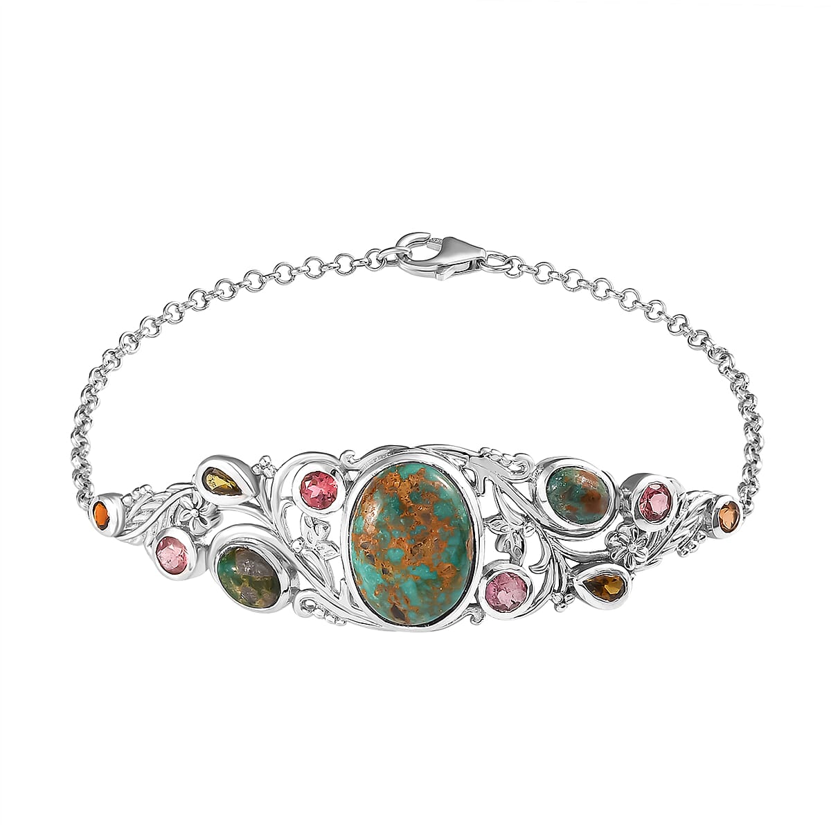 Sierra Nevada Turquoise and Multi-Tourmaline Fancy Bracelet in Platinum Over Sterling Silver (7.50 In) 12.00 ctw