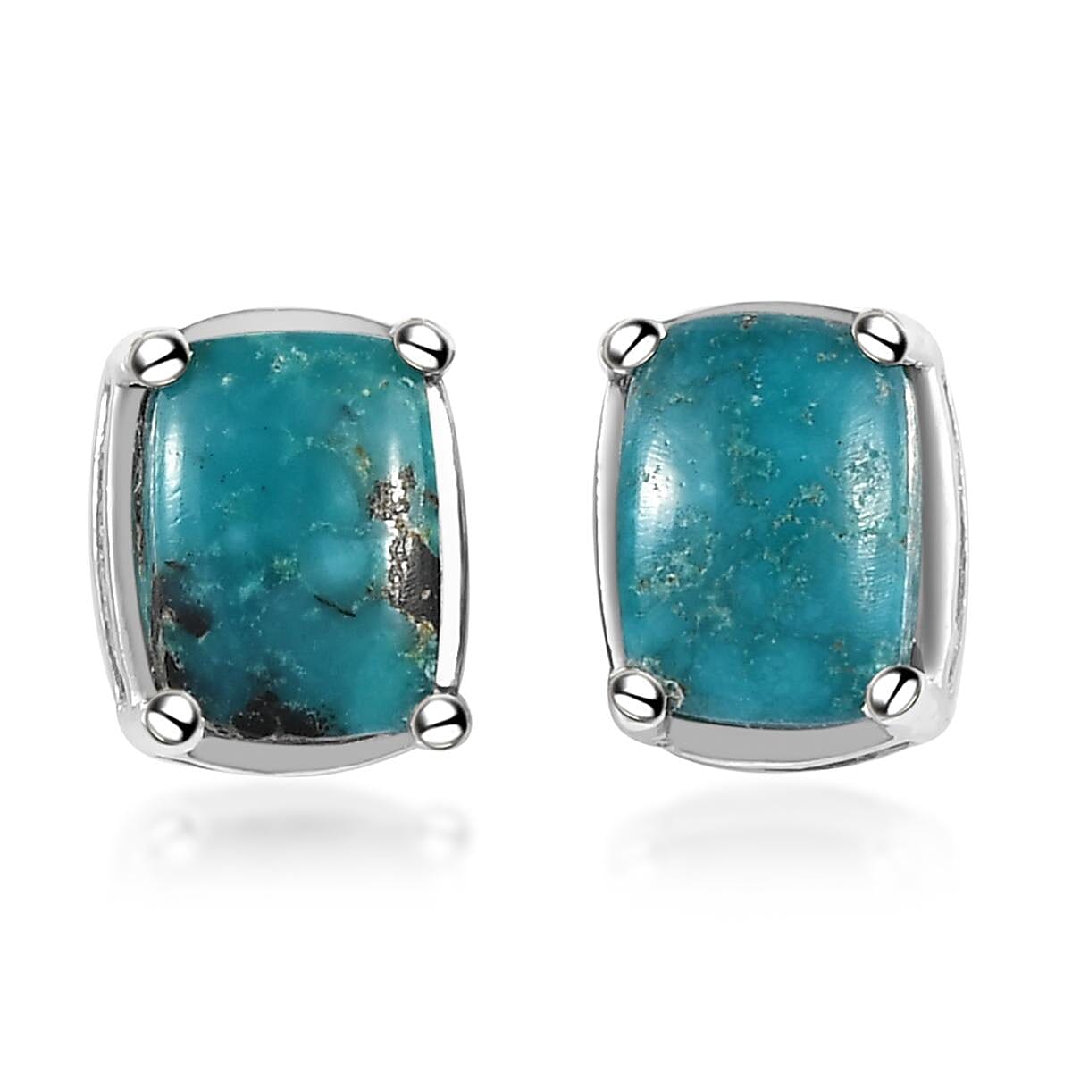 Sierra Nevada Turquoise Solitaire Stud Earrings in Platinum Over Sterling Silver 1.90 ctw