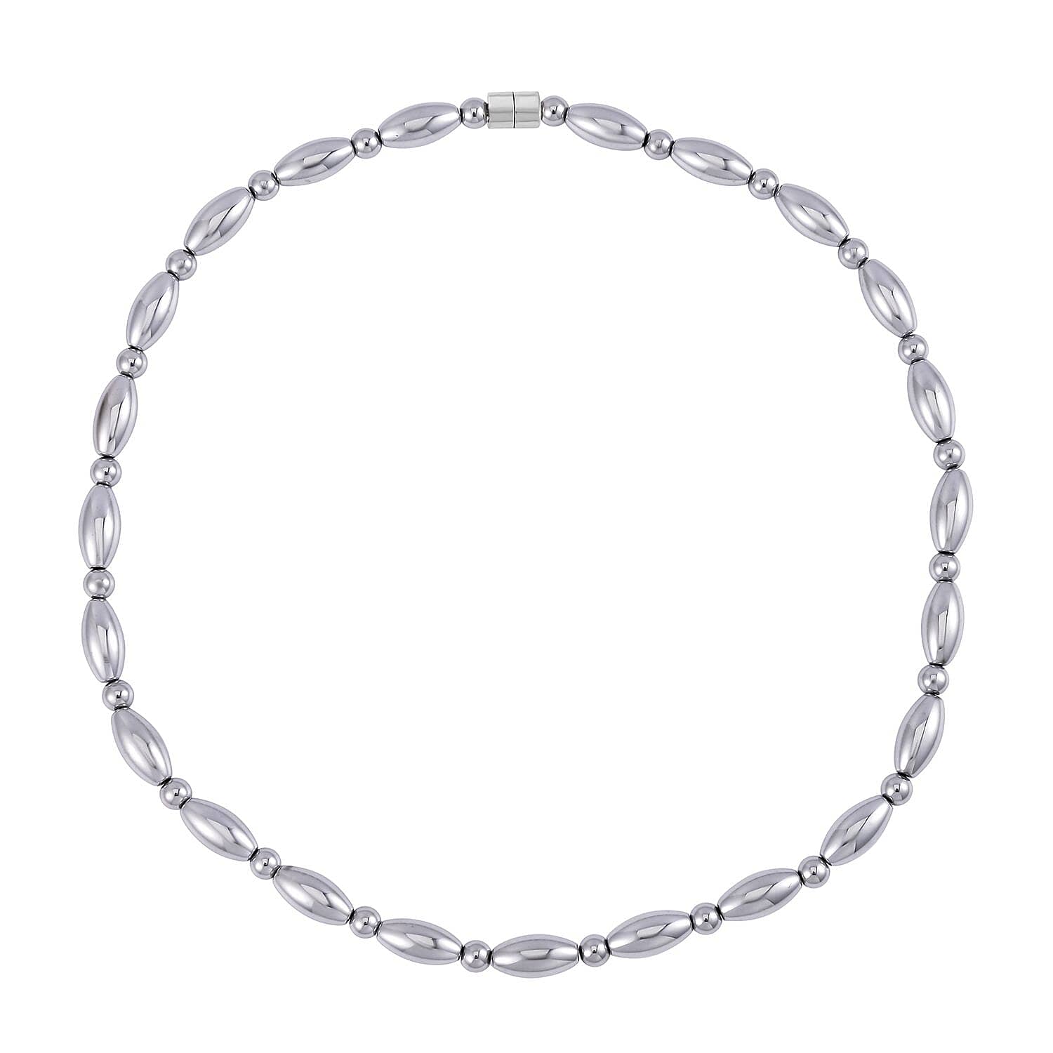 This hematite beaded necklace offers a unique design, blending the elegance of hematite beads with the functionality of a magnetic clasp. Crafted to provide durability and style, this 20-inch necklace stands out with its distinctive pattern of alternating beads.