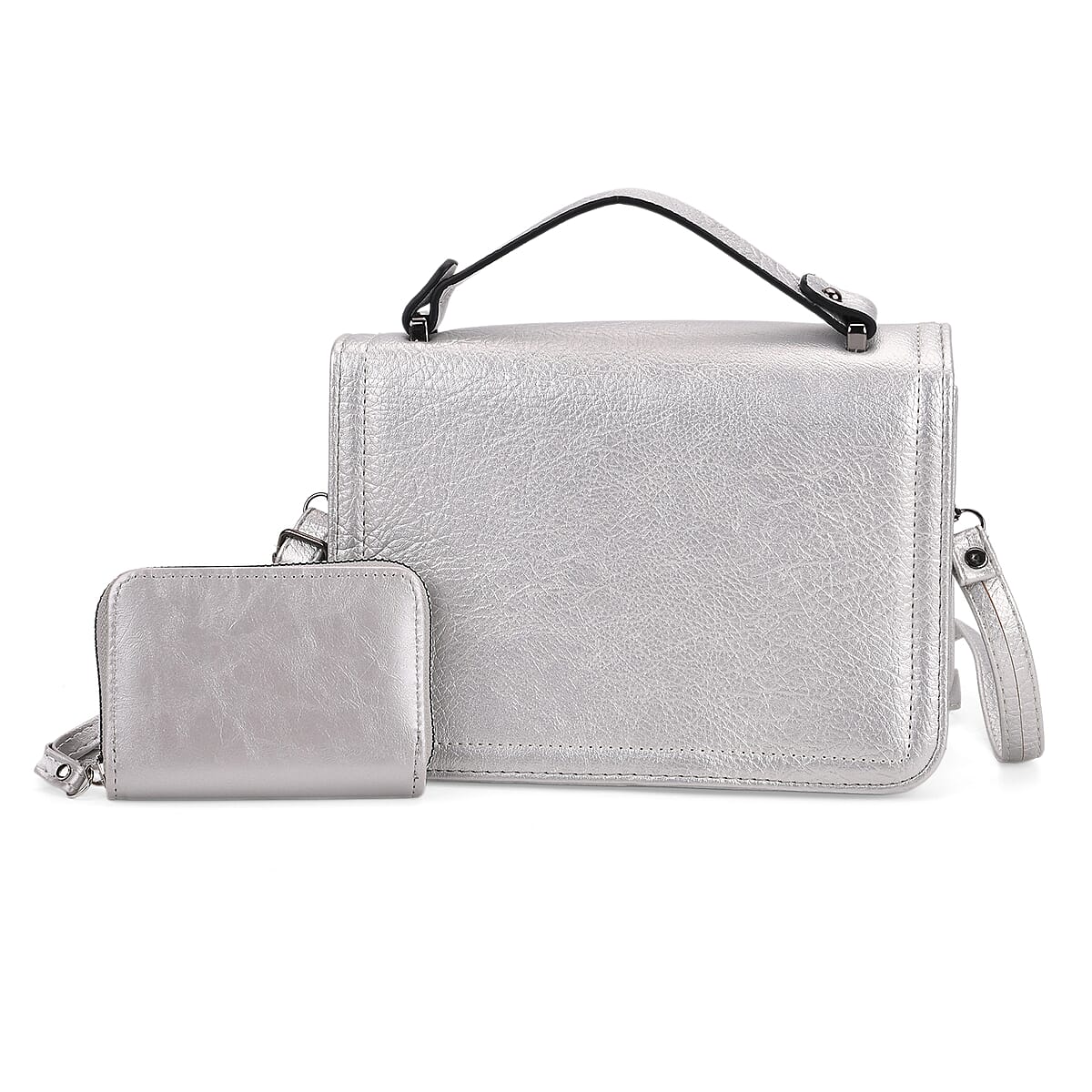 Silver Faux Leather Crossbody Bag with Shoulder Strap and Card Holder
