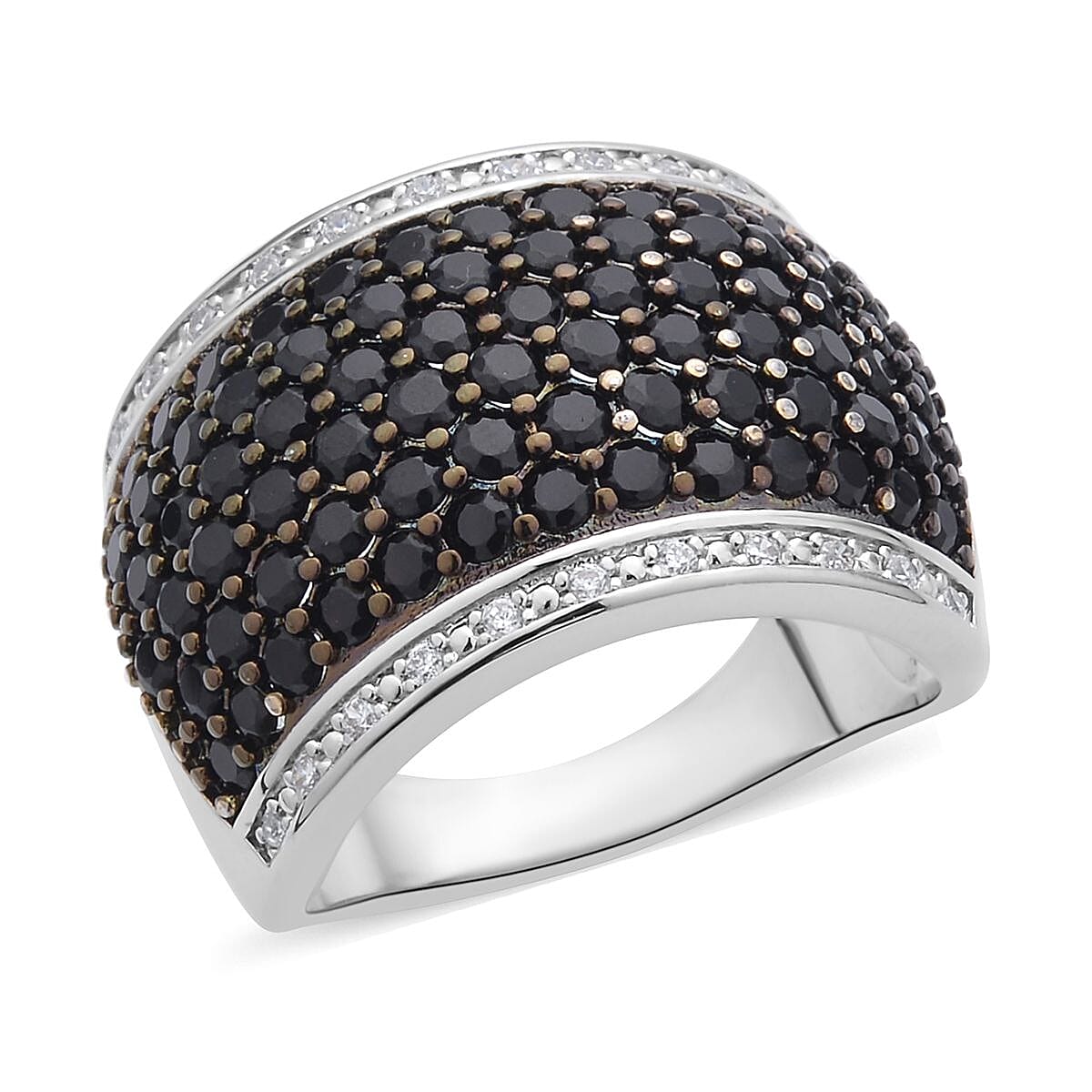 Simulated Black and White Diamond Ring in Rhodium and Silvertone (Size 6.0) 1.50 ctw