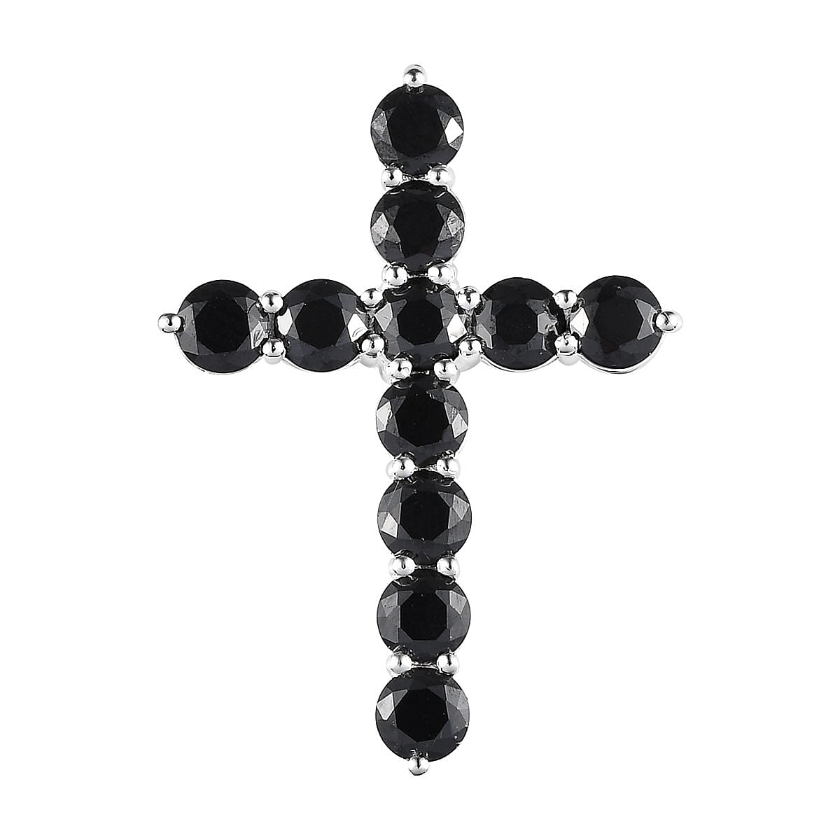 Simulated Black Diamond Cross Pendant in Sterling Silver
