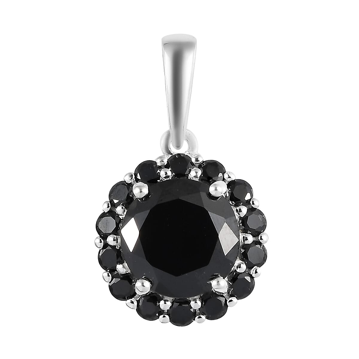 Simulated Black Diamond Halo Pendant in Sterling Silver 4.35 ctw