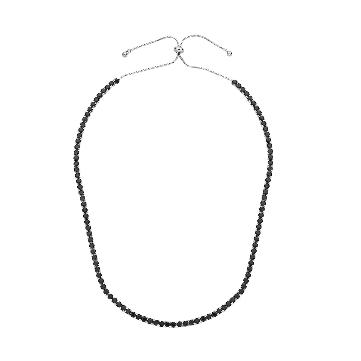 Simulated Black Diamond Tennis Necklace 18-26 Inches with Bolo Slider in Silvertone