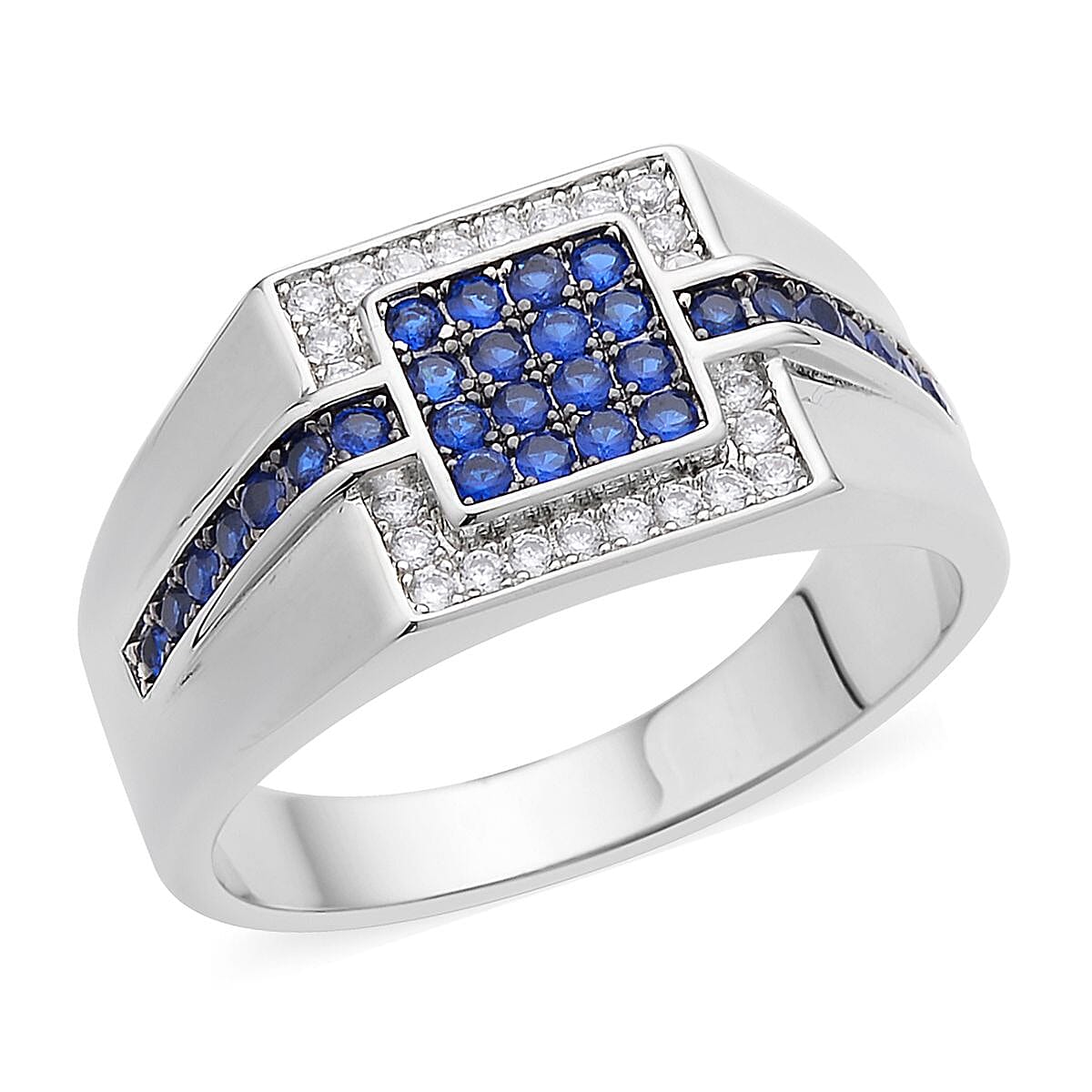 Simulated Blue and White Diamond Men's Ring in Silvertone (Size 13.0) 0.70 ctw
