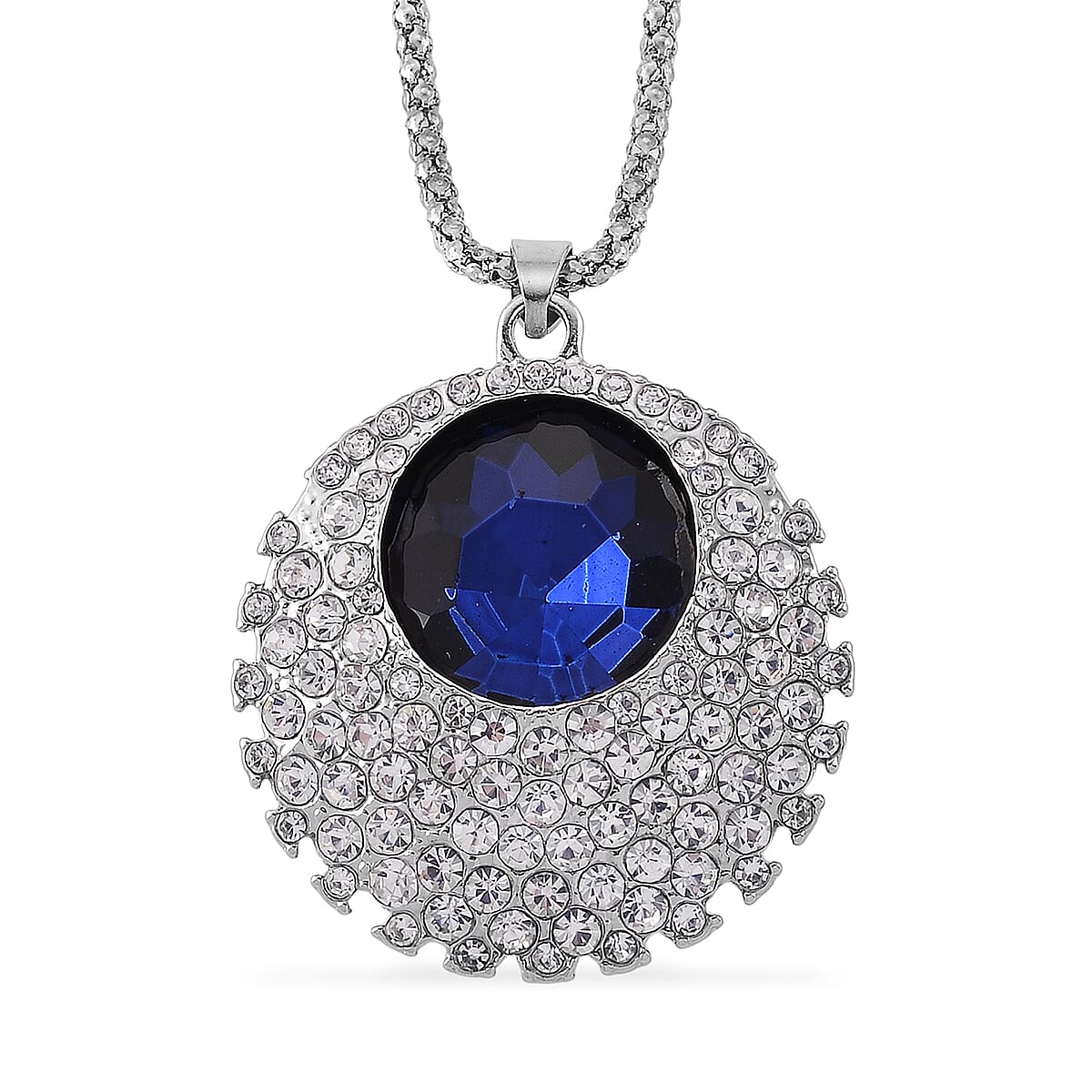 Simulated Blue Sapphire and Austrian Crystal Celestial Pendant Necklace in Silvertone 24-26 Inches