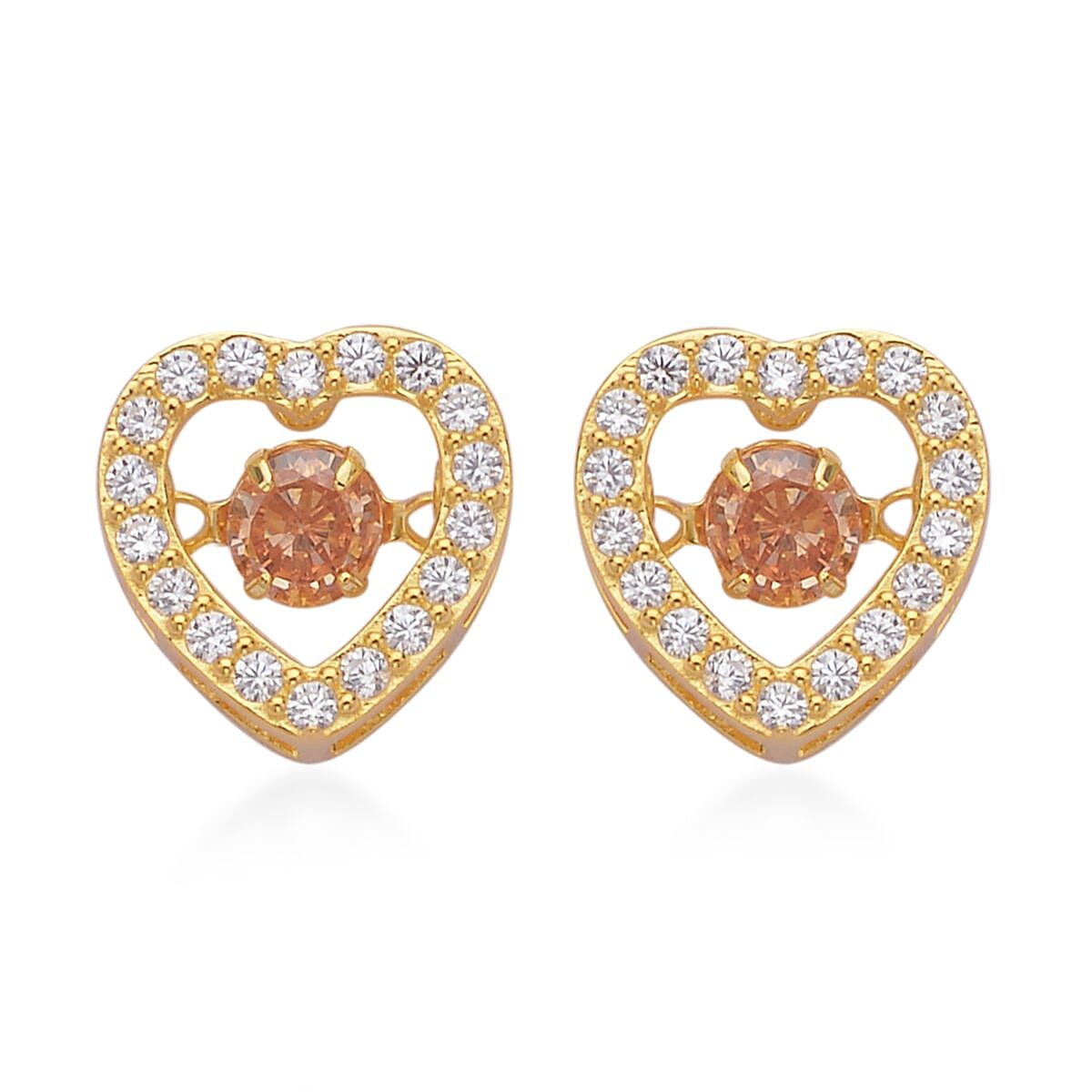 Simulated Champagne and White Diamond Heart Shape Dancing Earrings in 14K Yellow Gold Over Sterling Silver 1.50 ctw