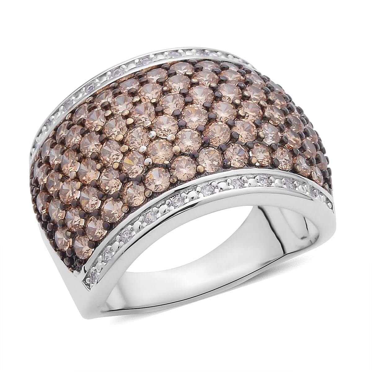 Simulated Champagne and White Diamond Ring in Rhodium and Silvertone (Size 5.0) 1.50 ctw