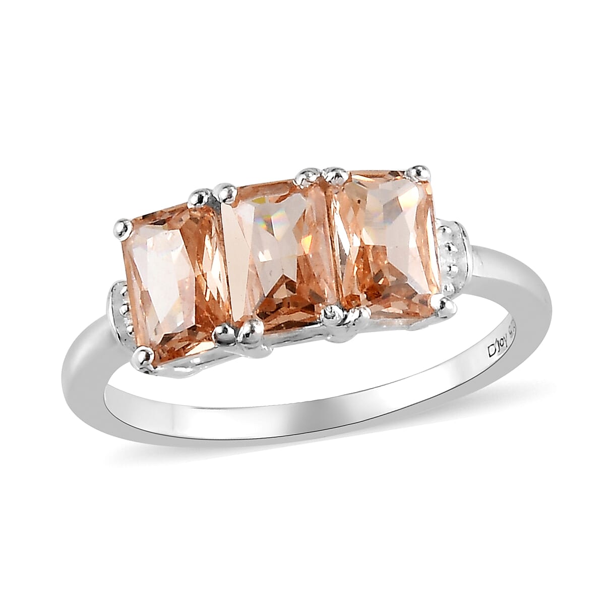 Transform your style with our simulated champagne color diamond three-stone ring in sterling silver, a captivating piece that effortlessly merges sophistication with contemporary allure. As you slip this ring onto your finger, prepare to be enchanted by its mesmerizing design and the ethereal glow of simulated champagne diamonds. Elevate your presence with a touch of glamour, celebrating your unique taste every moment.