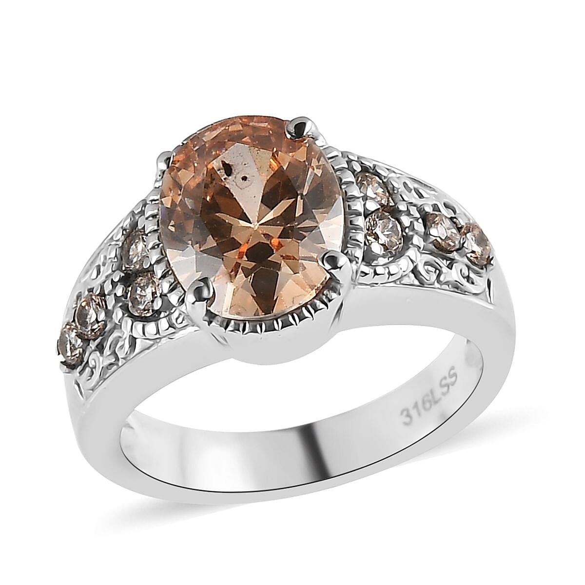 Simulated Champagne Color Diamond 4.50 ctw Ring in Stainless Steel (Size 6.0)