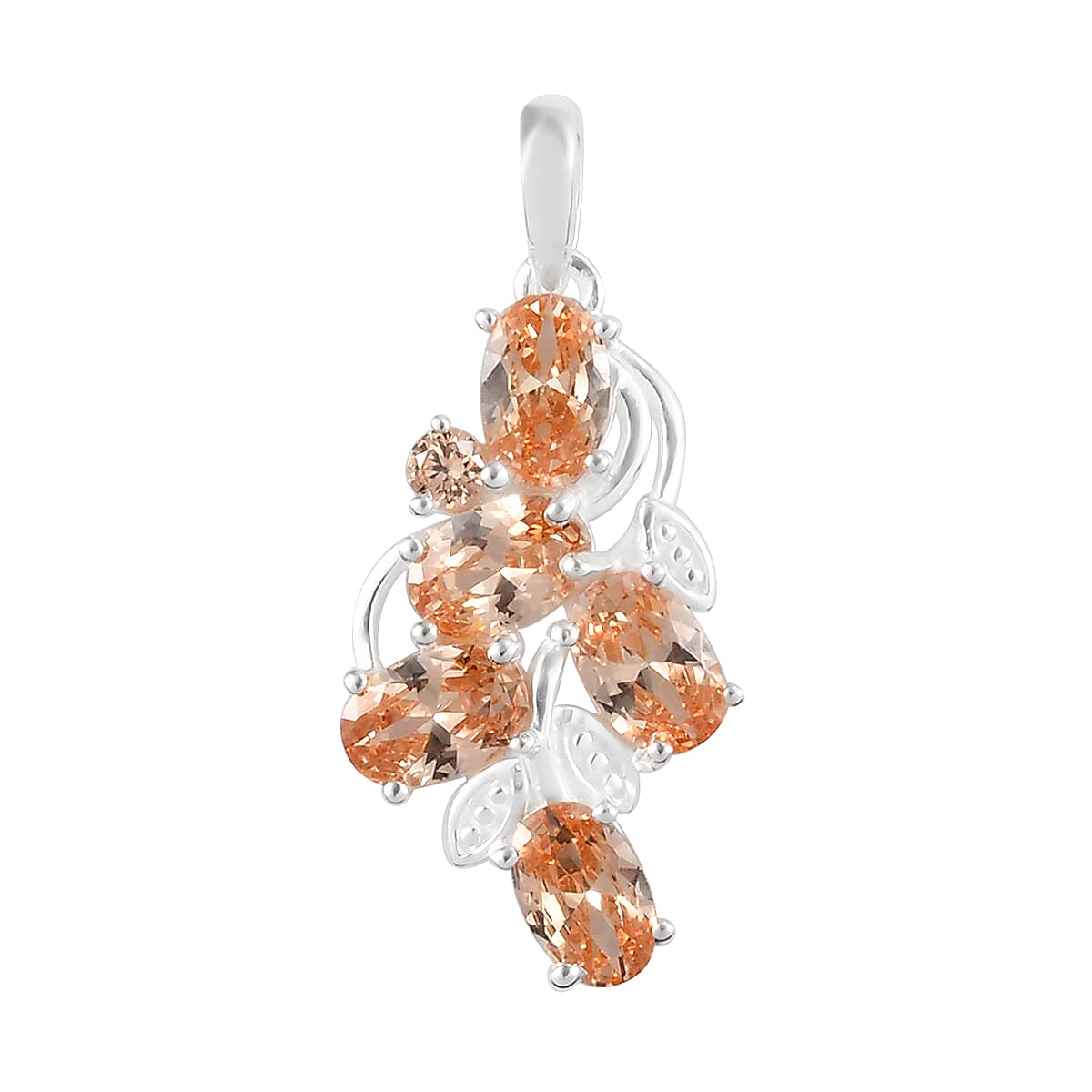 Simulated Champagne Color Diamond Pendant without Chain in Sterling Silver