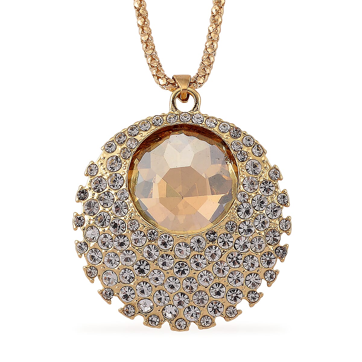 Simulated Champagne Sapphire and Austrian Crystal Celestial Pendant Necklace in Goldtone 24-26 Inches
