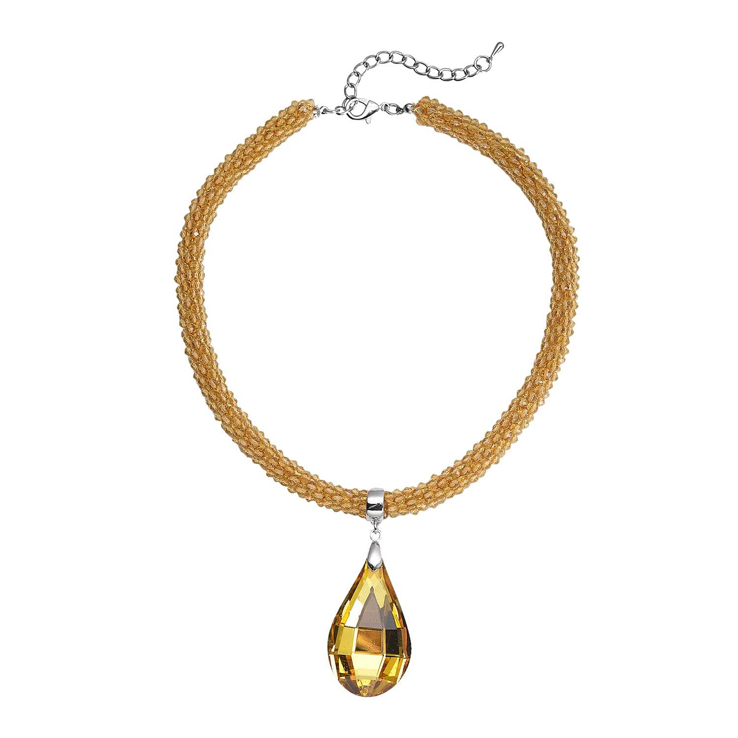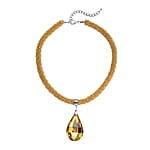 Simulated Citrine Pendant with Beaded Necklace 18-20 Inches in Silvertone