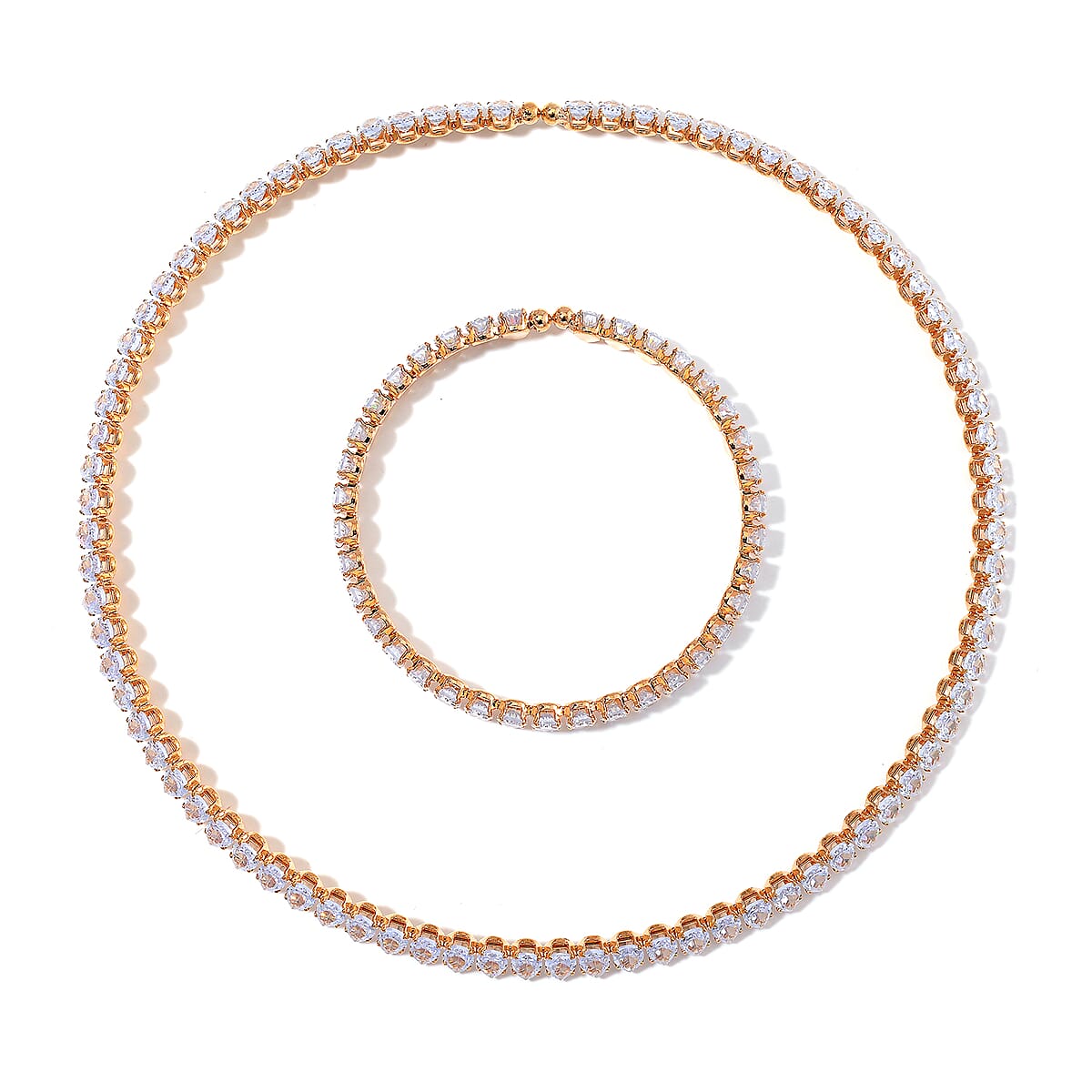 Simulated Diamond 130.00 ctw Choker Necklace (17 Inches) and Stretch Bracelet in Goldtone