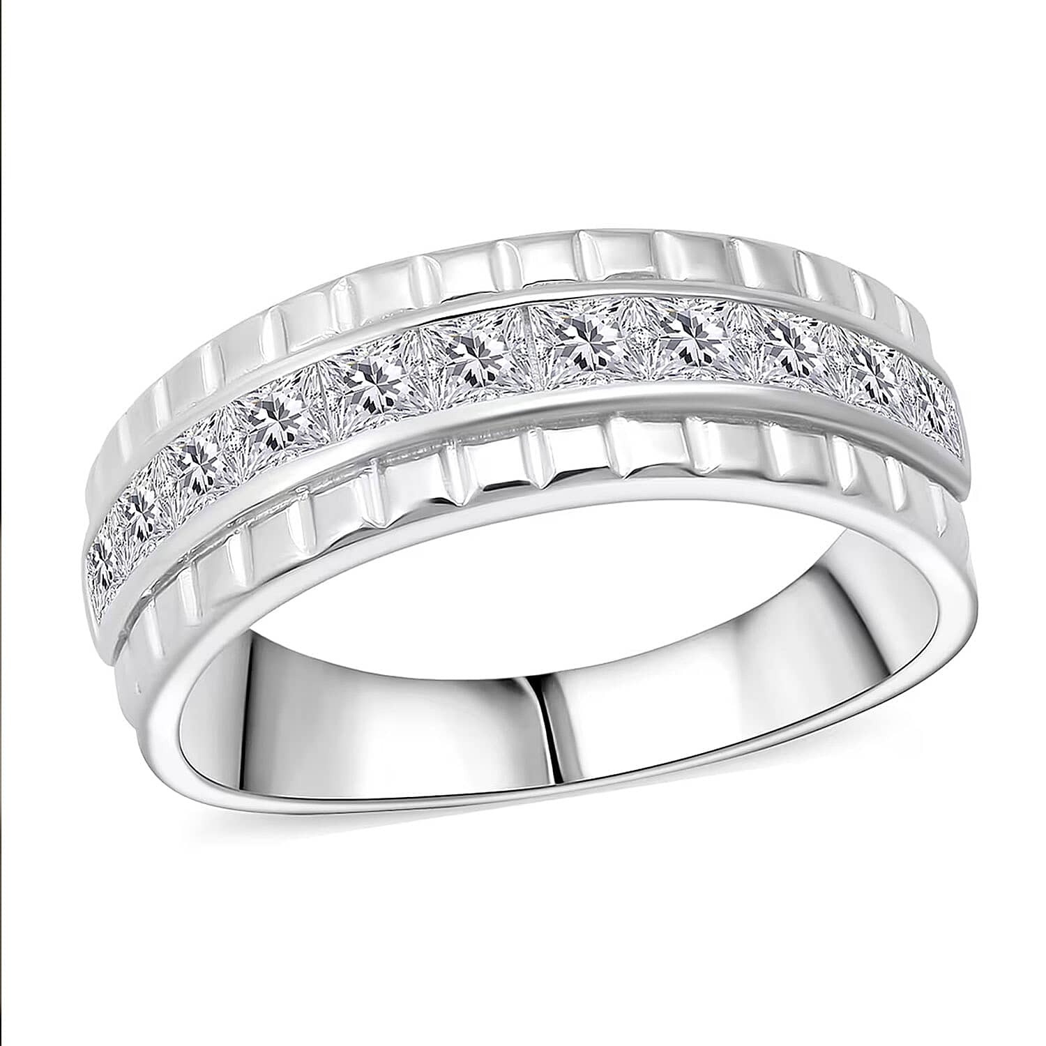 Sophisticated glamour with this simulated diamond ring in sterling silver. This simulated diamond captures light the way genuine diamonds do. You will appreciate this band ring's elegant design that signals refined taste.