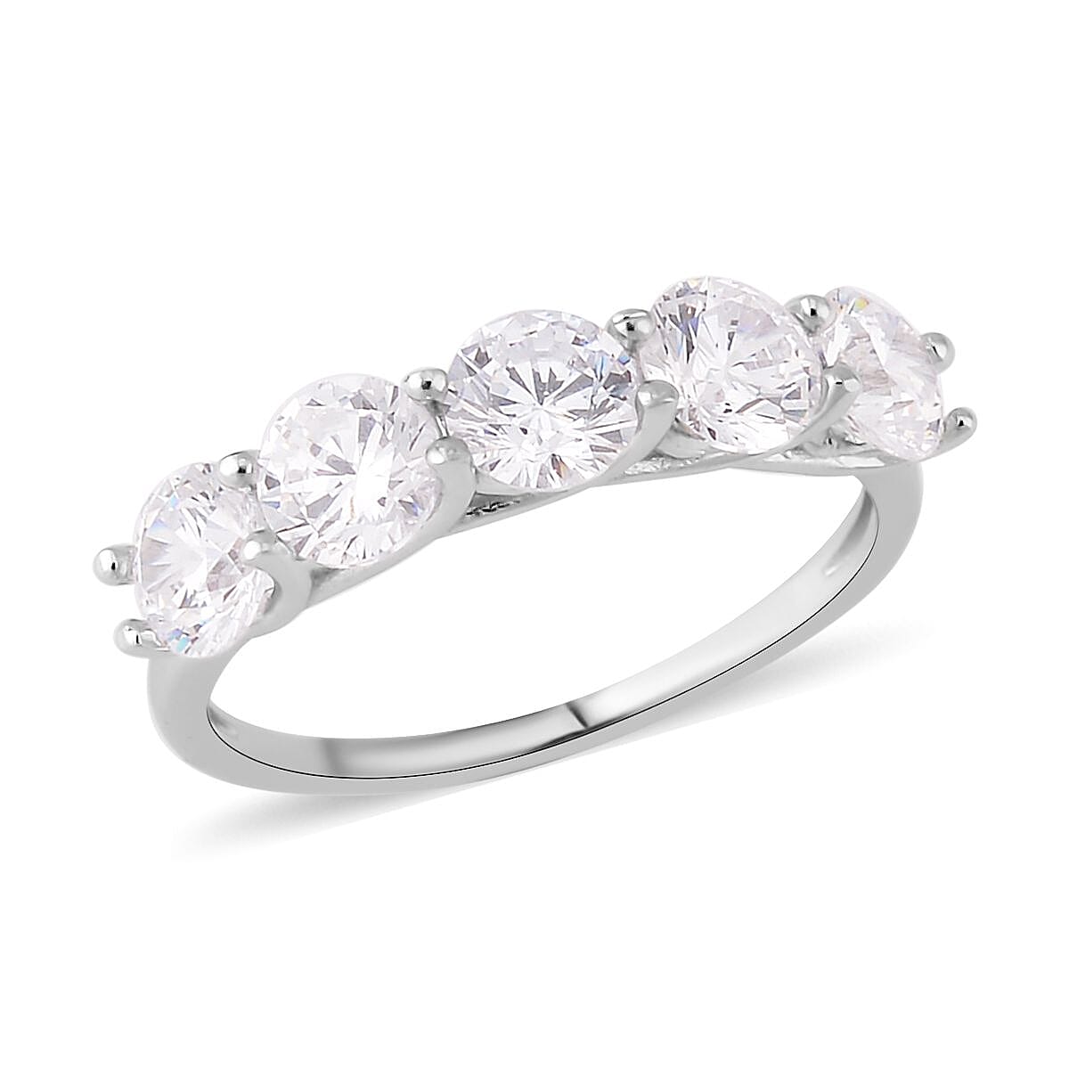Simulated Diamond 5 Stone Ring in Rhodium Over Sterling Silver (Size 10.0) 3.80 ctw