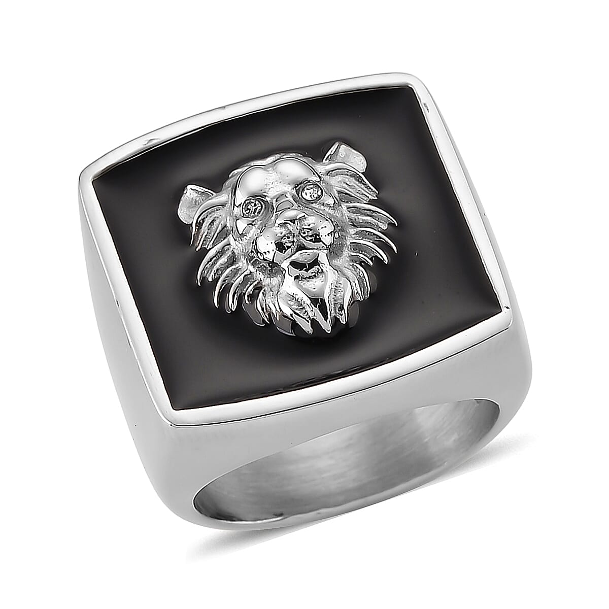 Command attention with this Simulated diamond and enameled ring in stainless steel. The bold animal motif ring captures the essence of untamed strength. You will notice how this lion head ring commands respect in social settings.