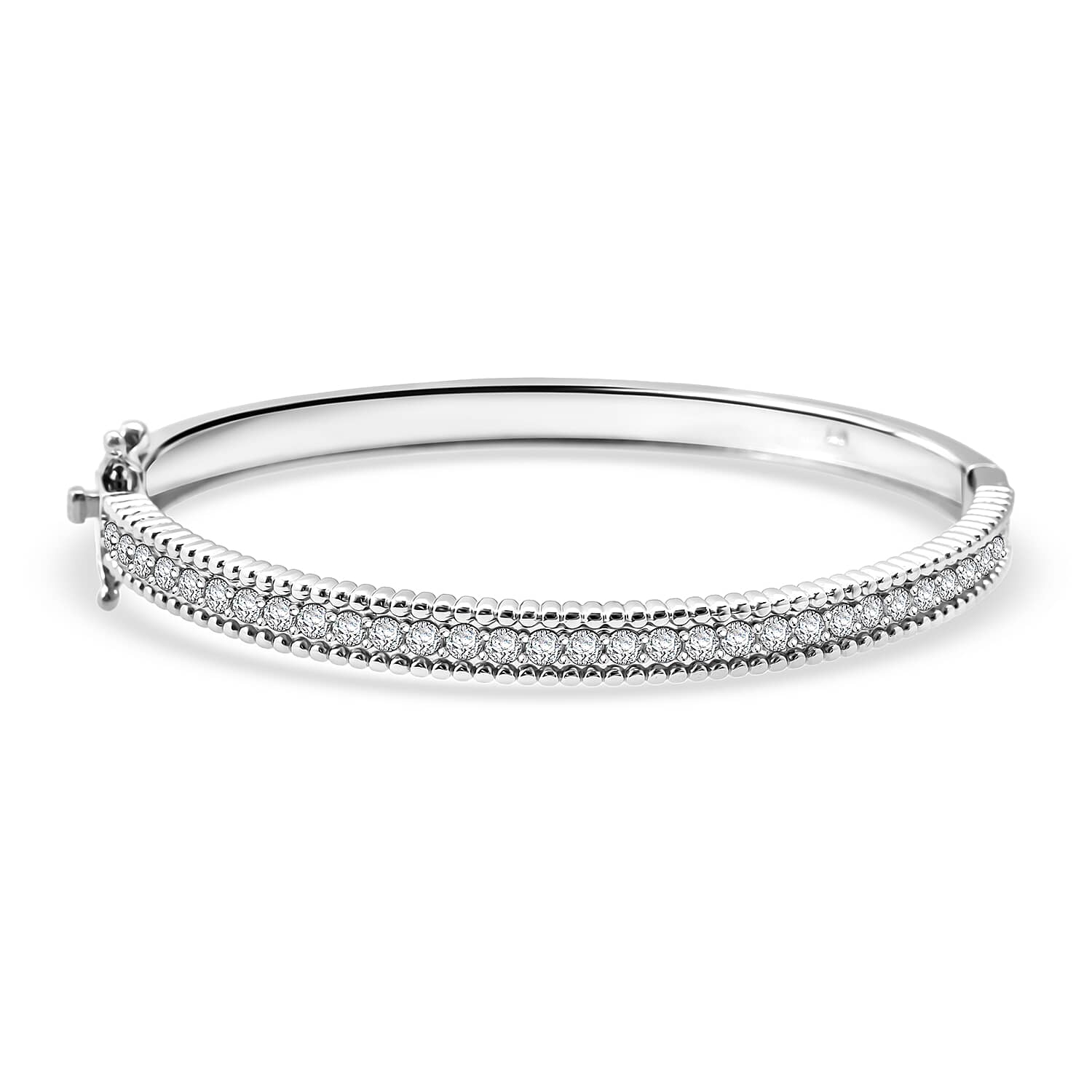 Elevate your collection with this simulated diamond bracelet in 925 sterling silver. This elegant bangle bracelet features sparkling diamond simulants for a sophisticated, eye-catching shine. Designed for versatile wear, it adds timeless elegance to both casual and formal outfits.