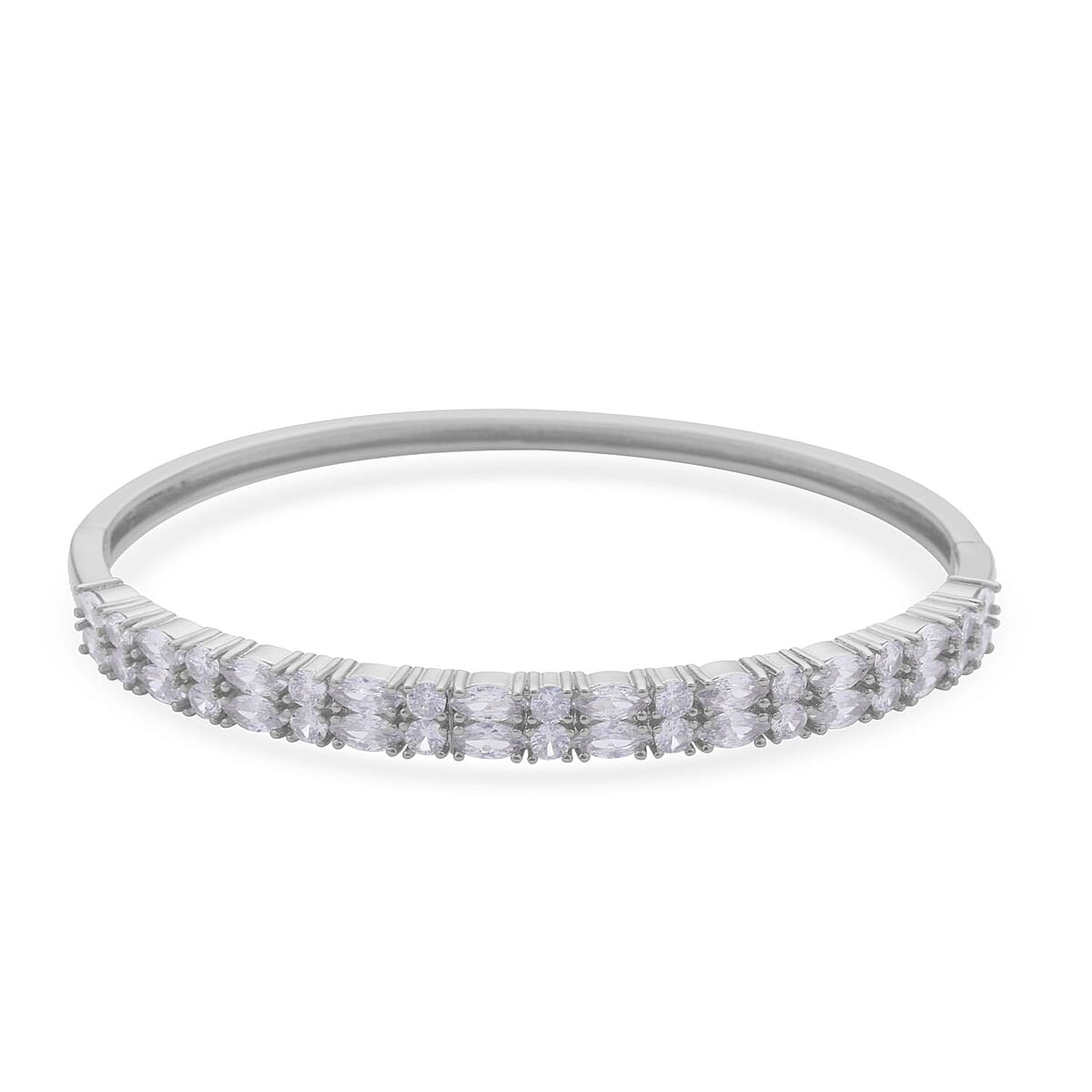 Simulated Diamond Bangle Bracelet in Silvertone (7.25 In) 11.65 ctw