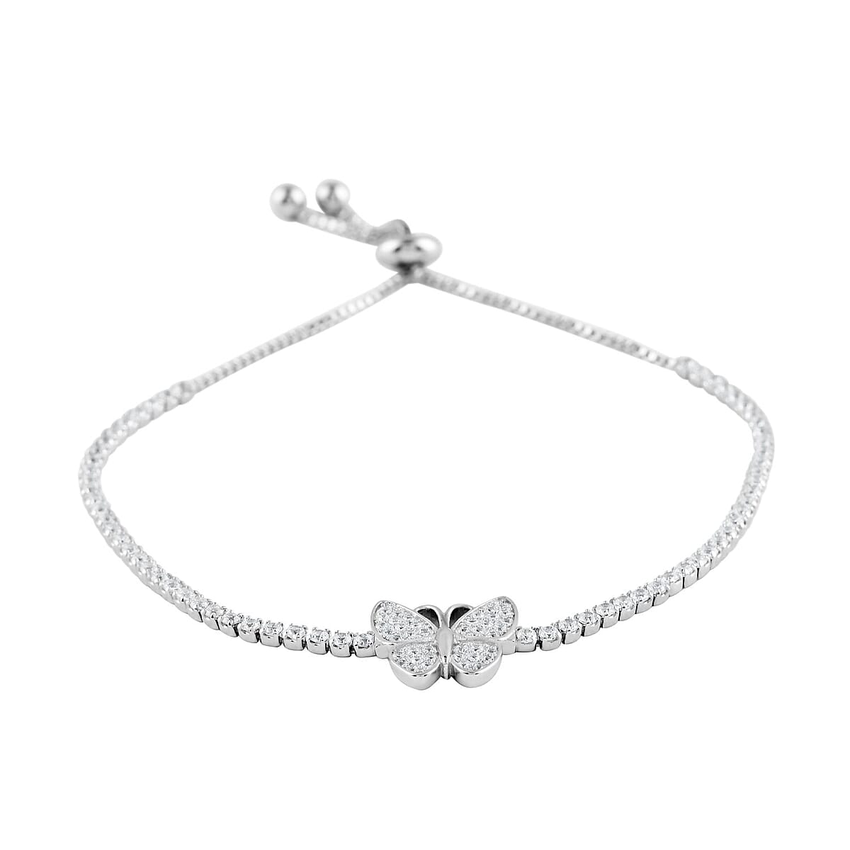 Unveil the magic with our simulated diamond butterfly bracelet, a marvel of elegance and durability. This adjustable, non-tarnish bolo bracelet, intricately designed with a prong setting, showcases a spectacular display of shimmering beauty. Perfect for every woman, it's a fancy bracelet that makes an unforgettable gift. Let this butterfly bracelet be your statement of sophistication and style.