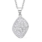 This pendant necklace showcases a round simulated diamond renowned for its brilliant shine. It is set in sterling silver on a stainless steel chain, offering durability and hypoallergenic properties.