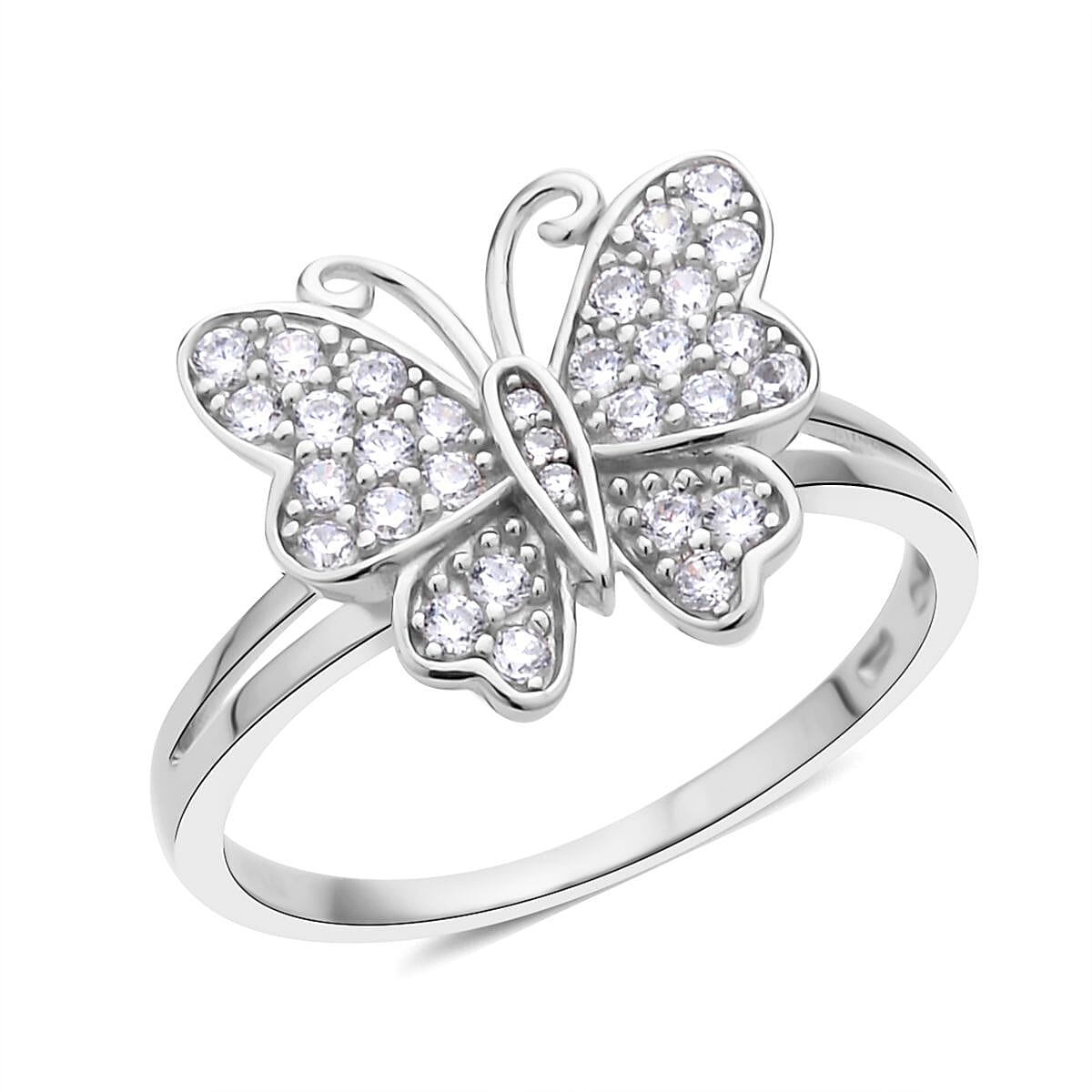 Simulated Diamond Butterfly Ring in Rhodium Over Sterling Silver (Size 7.0) 0.50 ctw