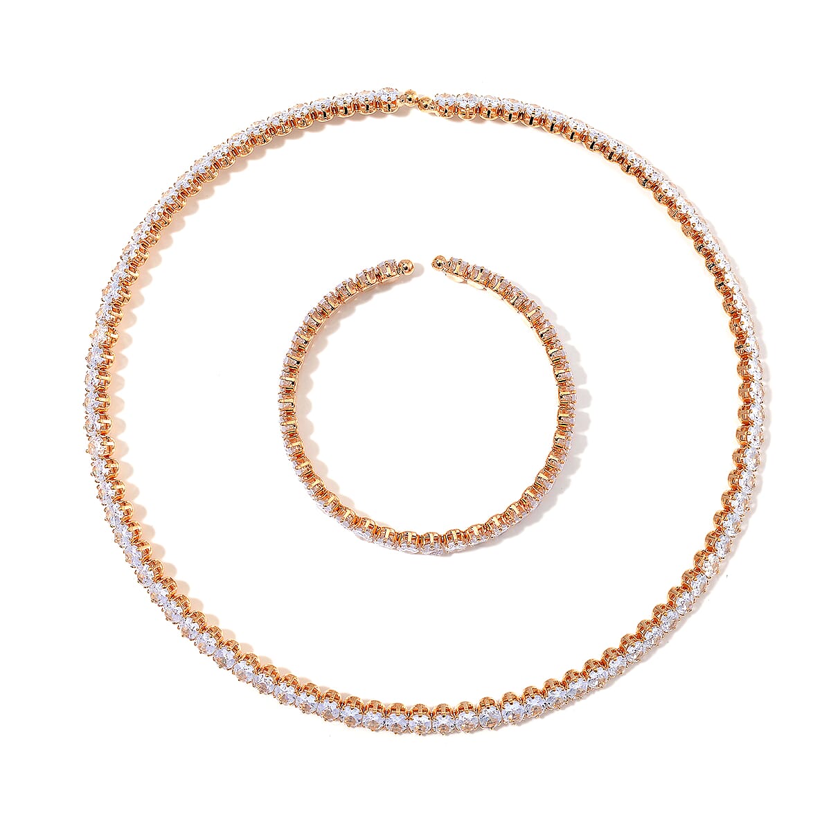 Simulated Diamond Choker Necklace (17 Inches) and Stretch Bracelet in Goldtone 130.00 ctw