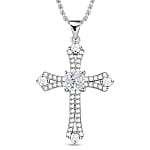 This simulated diamond cross pendant combines elegance with affordability, featuring a timeless cross-design set with high-quality gems. These stones offer brilliant sparkle and durability, making this fancy pendant a meaningful adornment.