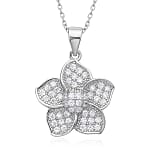 Simulated Diamond Flower Pendant in Rhodium Over Sterling Silver with Stainless Steel Necklace 20 Inches