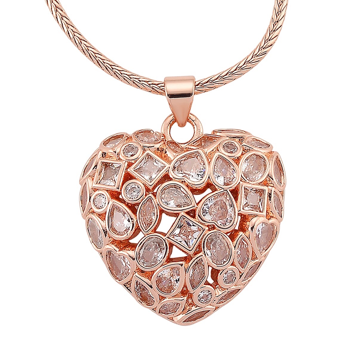 Simulated Diamond Heart Pendant Necklace in Rosetone 20-21.5 Inches