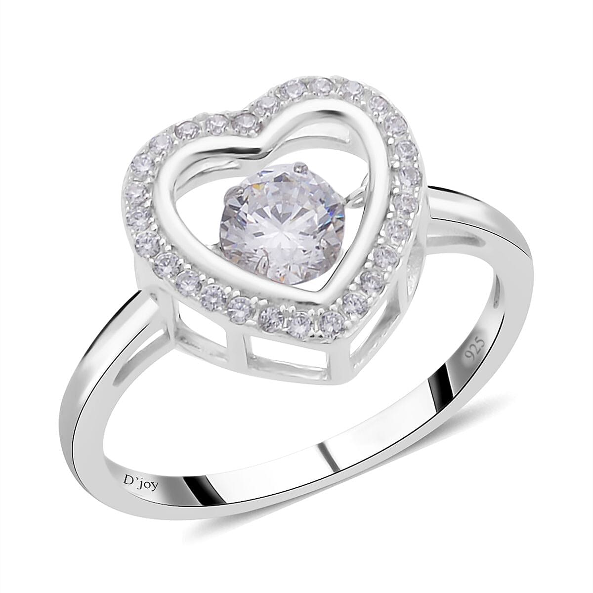 Simulated Diamond Heart Shape Dancing Ring in Rhodium Over Sterling Silver (Size 5.0) 1.00 ctw