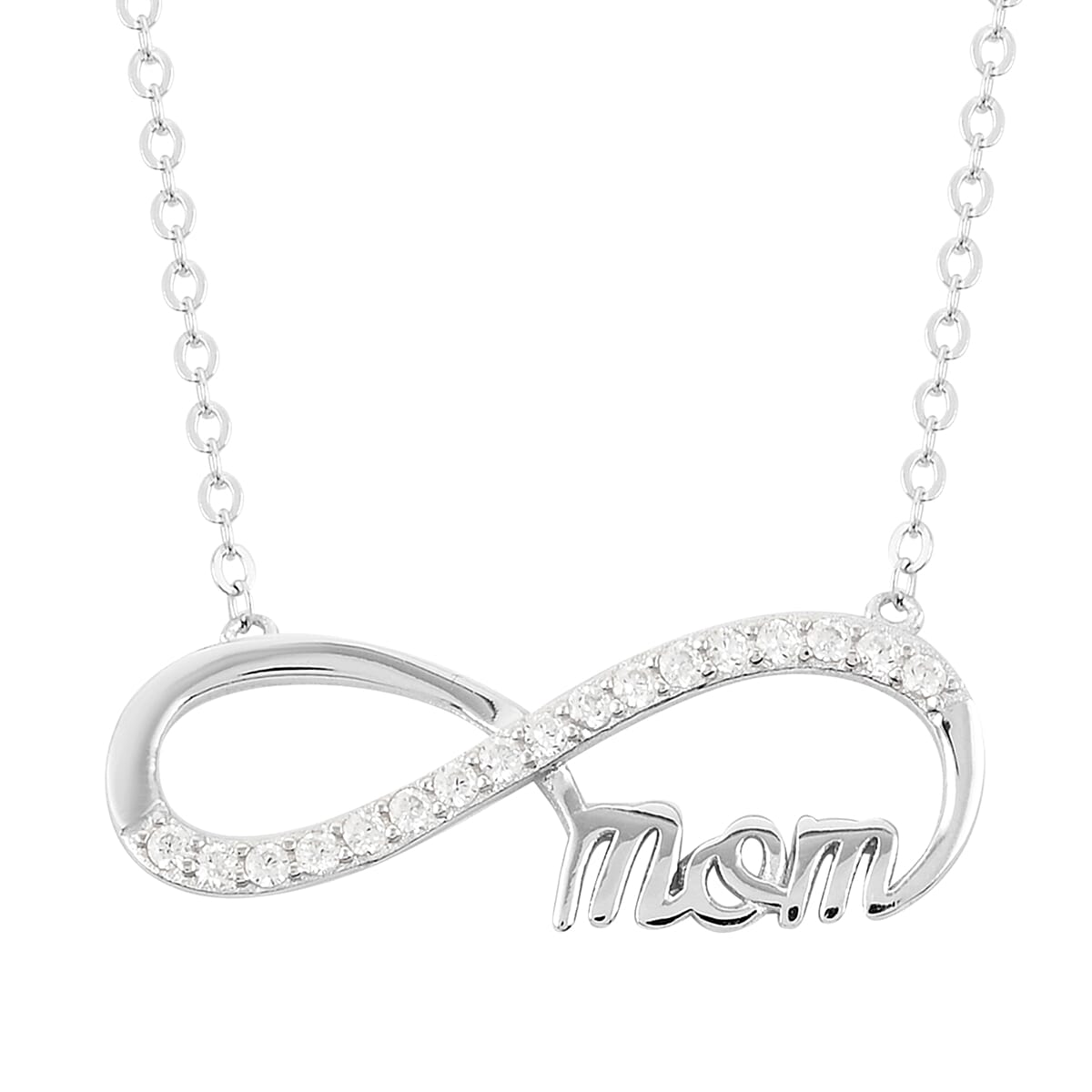 Simulated Diamond Infinity Mom Necklace 16-18 Inches in Sterling Silver